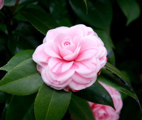 山茶花開花于冬春之際,花姿豐盈,端莊高雅,是中國傳統(tǒng)十大名花之一,也是世界名花之一。郭沫若盛贊曰:“茶花一樹早桃紅,百朵彤云嘯傲中。”